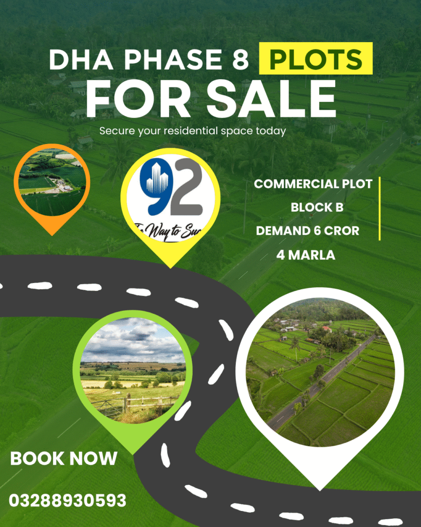 Commercial Plot for Sale in DHA Lahore Phase 8 – Prime Investment Opportunity Are you looking for a high-value commercial investment in DHA Lahore? This is a rare and golden opportunity in one of the most premium commercial hubs of Phase 8. The commercial market in DHA Phase 8 Broadway, especially B Block, has become a top choice for brands, corporate offices, restaurants, banks, and high-end commercial...
