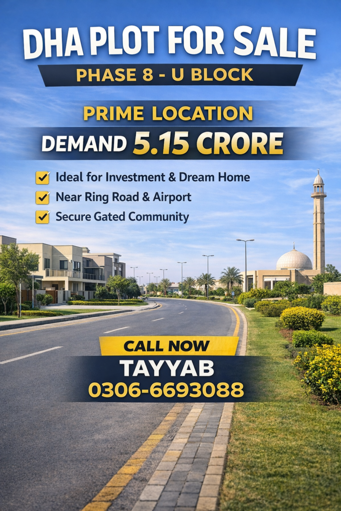 DHA Plot for Sale – Phase 8 U Block | Prime Investment Opportunity If you are looking for a premium real estate investment in Lahore, this DHA Phase 8 U Block plot for sale is a perfect opportunity. Defence Housing Authority (DHA) Lahore is known for its world-class infrastructure, secure environment, and high investment returns. Among all phases, Phase 8 has become one of the most desirable locations...